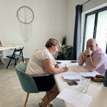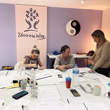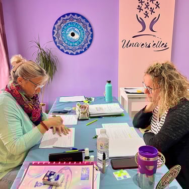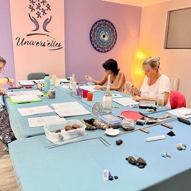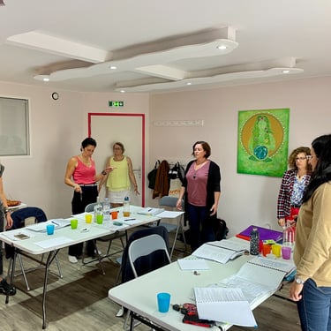 En plus des apports théoriques et pratiques (travail sur table en duo/trio), je vous apporte des solutions pratiques et/ou intuitives (ma zone de génie) et je réponds à vos questionnements qu'ils soient spirituels ou plus pragmatiques. Et tout ça, de façon authentique et accessible.